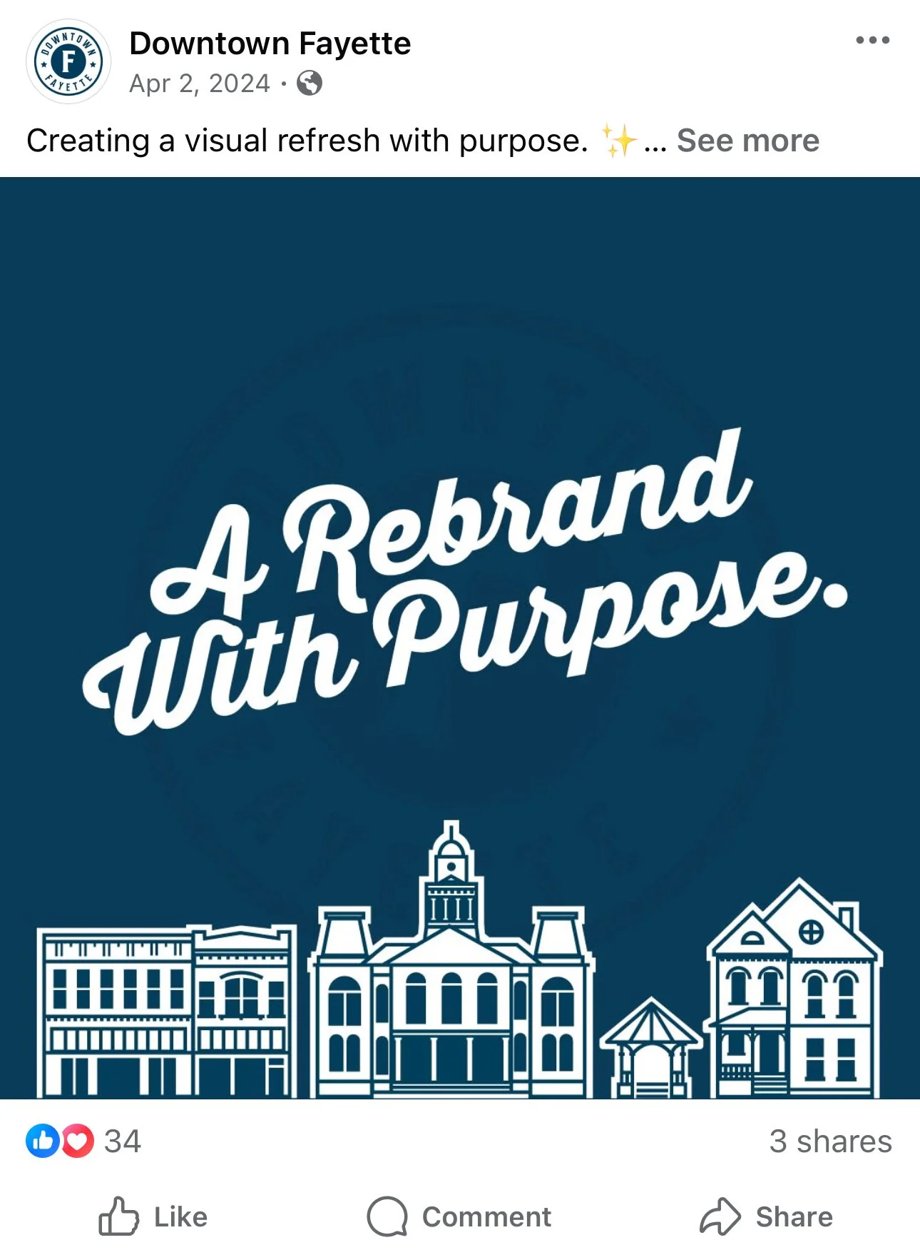 From a new logo to brochures to social media posts, our team worked closely with the Main Street organization in Fayette, MO, to capture the city’s spirit in updated marketing materials.